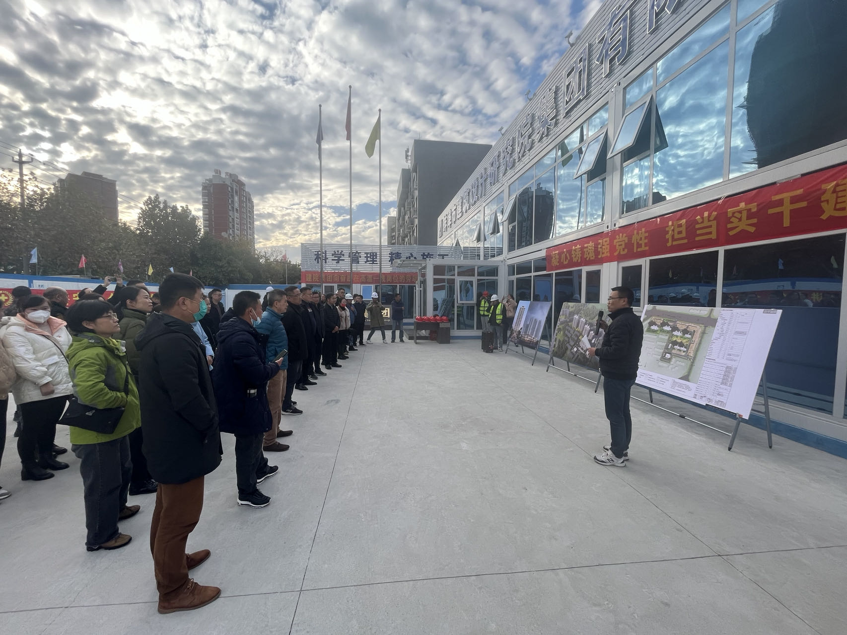 全體人員聽取了古原名邸項目部對工程概況、工程進展等內容的匯報,實地參觀了項目施工現場,學習了解施工標準化建設、安全文明施工、揚塵防污管理等相關情況。