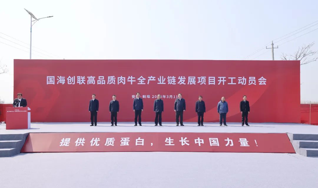 3月11日上午,國海創(chuàng)聯(lián)高品質(zhì)肉牛全產(chǎn)業(yè)鏈發(fā)展項目開工動員會在懷遠縣舉行。副省長張曙光宣布項目開工,市委書記黃曉武致辭,省政府副秘書長金宗順,省農(nóng)業(yè)農(nóng)村廳廳長汪學軍,省農(nóng)墾集團總經(jīng)理張其廣,省農(nóng)業(yè)農(nóng)村廳副廳長湯洋,國海創(chuàng)聯(lián)實業(yè)集團有限公司董事長閆濤,國家肉牛牦牛產(chǎn)業(yè)技術(shù)體系首席科學家曹兵海,市領(lǐng)導王慶武、吳永彬、喬樹偉,淮北市、亳州市、宿州市、阜陽市、淮南市、滁州市、六安市政府分管負責同志出席。蚌埠國控集團黨委書記、董事長陳建功和集團黨委副書記、副董事長、總經(jīng)理劉冰參加動員會。