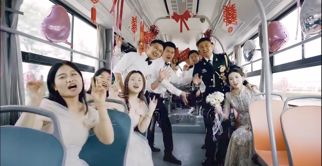 “那就歡歡喜喜辦一場(chǎng)簡(jiǎn)約時(shí)尚的婚禮吧!”——新時(shí)代新風(fēng)尚新婚俗,5月11日,公交定制時(shí)尚囍禮“專線”成為清晨一道靚麗的風(fēng)景線。年輕的新郎新娘在親朋好友的陪伴和見(jiàn)證下一同乘坐“幸福專列”,開(kāi)啟專屬幸福旅程。